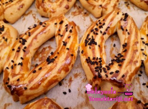 Ardından yağlı kağıt serdiğimiz tepsiye diziyoruz. Hepsi bitince üzerilerine yumurta sarısı sürüp, çörek otu serpiyoruz.