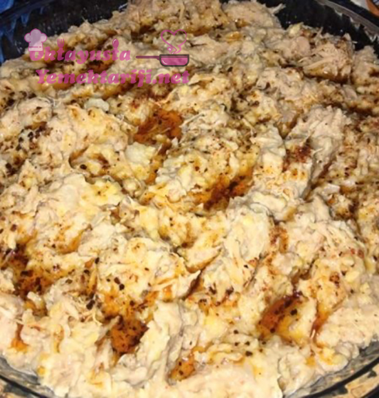 Tavuklarımızı su ile birlikte tencereye alıp, haşlıyoruz. Suyunu atmıyoruz. Tavuklar el değecek sıcaklığa inince ince ince didikliyoruz.