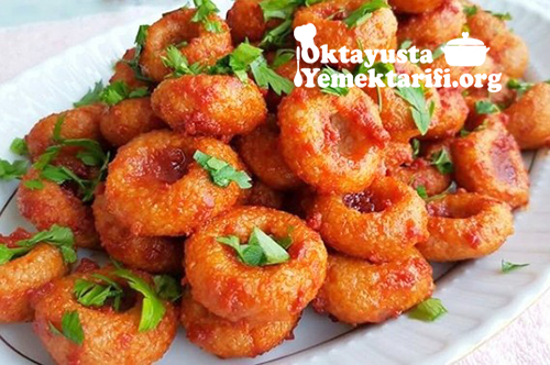 Ilındıktan sonra içine unu ve yumurtayı katıp, yoğuruyoruz. Salçayı ilave edip, yoğurmaya devam ediyoruz. Tuz, karabiber ve kimyonu da ekleyip, yoğuruyoruz. Küçük parçalar alıyoruz ve yuvarlayıp, üzerine serçe parmağımız ile bastırıp, şeklini veriyoruz.