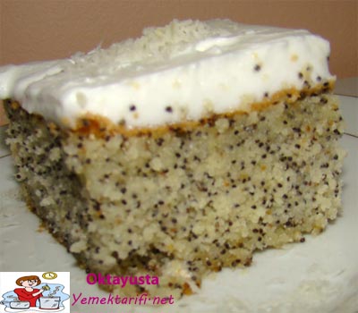 Karıştırma kabına şeker ve yumurtamızı koyup, köpürene kadar mikserle çırpıyoruz. Daha sonra irmiğimizi, elediğimiz unumuzu, yoğurdumuzu, vanilyamızı, kabartma tozumuzu, haşhaşımızı ve biraz limon kabuğu rendesi ilavesi yaparak mikser yardımıyla iyice çırpıyoruz.