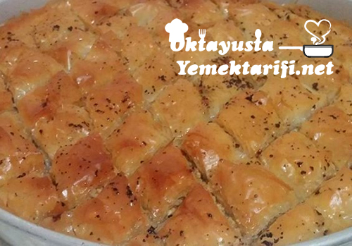 Bu şekilde bir ceviz bir sıvı yağ ile üst üste yufkaları diziyoruz. En son yufkanın üzerine bir şey koymuyoruz. Ardından ister kare istersek de baklava dilimi şeklinde dilimliyoruz.