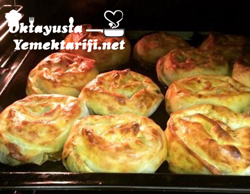 İlk yufkamızı tezgaha seriyoruz. Üzerine sosumuzdan koyup, fırça ile her yerine sürüyoruz. Ardından dört parçaya bölüyoruz. Üçgenlerin geniş kenarına boydan boya ıspanaklı harçtan koyup, rulo şeklinde sarıyoruz. Ardından ruloyu kendi etrafında döndürerek gül şekli veriyoruz ve yağlı kağıt serdiğimiz fırın tepsisine diziyoruz.