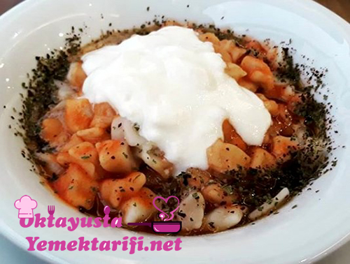 Mantılarımız pişince tenceredeki suyun bir kısmını boşaltıyoruz. Hazırladığımız sosu tencereye döküyoruz ve mantılarla iyice karışmasını sağlıyoruz.
