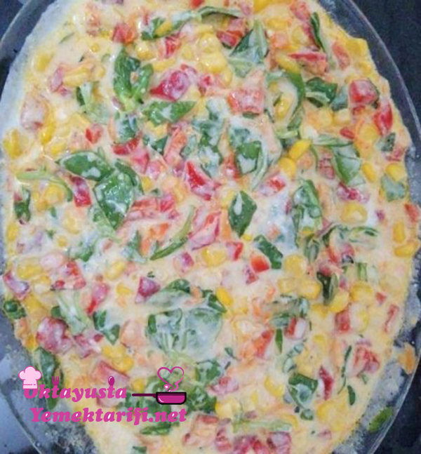 Süzlmüş semizotlarnı karıştırma kabına alıyoruz. Üzerine biber, havuç ve mısırları ekleyip, harmanlıyoruz.