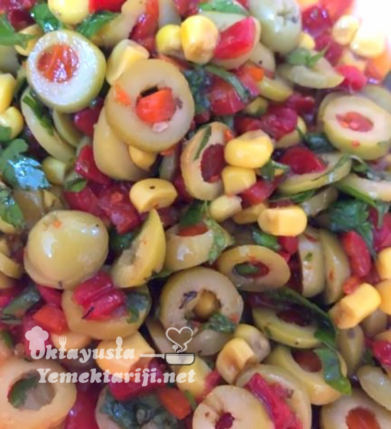 Köz Biberli Yeşil Zeytin Salatası Yapılışı:
