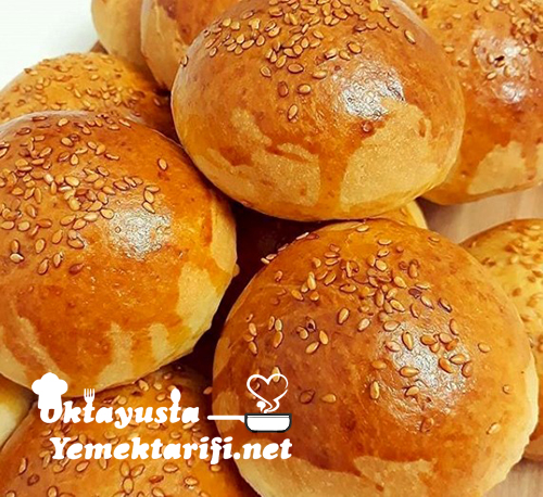 Ardından ayırdığımız yumurta sarısından sürüyoruz. Susam serpiyoruz. Fırını 180 derecede ısıtıp, üzerileri kızarana kadar pişiriyoruz.