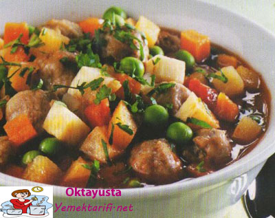 Daha sonra kuşbaşı doğradığınız biberleri ve domatesleri ilave edip beş dakika kaynatınız. Yine kuşbaşı doğradığınız patates ve havuçları da ilave edip 10 dakika kaynatınız.